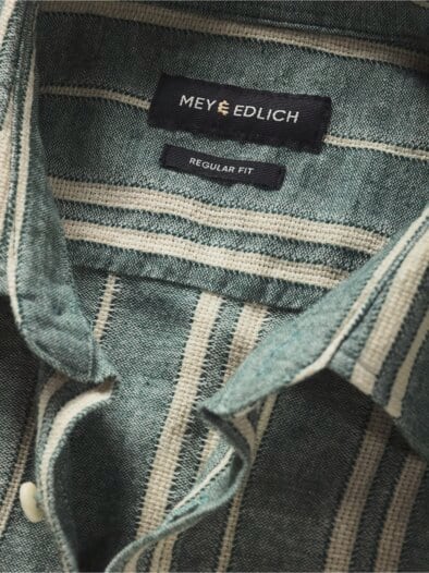 Musterbeispiel für Ungezwungen. Streifenhemden wirken gerne mal eine Spur zu formell, gestelzt, managerhaft und fast schon kleinkariert. Hier der konsequente Gegenentwurf zum Business-Hemd, der garantiert in kein GF-Meeting oder zum Anzug passen will. Okay, wenn wir schon so frei sind: Ein fast schon achtlos übergeworfener Leinenanzug geht vielleicht doch, gern in naturweiß, passend zum Strand wie auch zu den Sandalen, und auf keinen Fall zugeknöpft. So entspannt können Streifen sein.