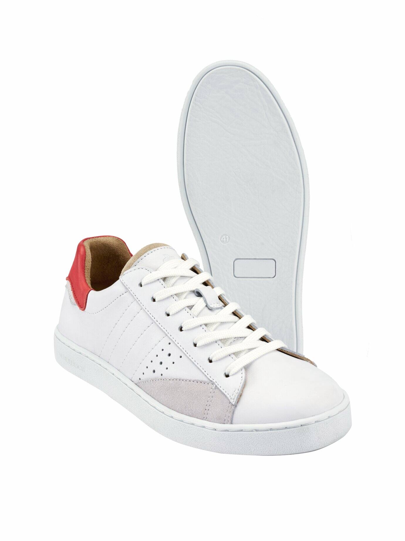 - Optik & Haptik: Glattleder sorgt bei weißen Sneakern für edle Schlichtheit, während Modelle mit einer Mischung aus glatten und rauen Oberflächen ein spannendes Spiel aus Texturen bieten. Je nach Modell kommt der Sneaker bereits mit einer leichten Patina für den Vintage-Look.