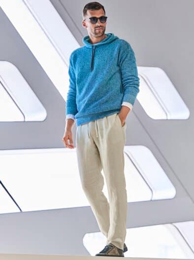 Die Klassische. Ihre Form kennen Sie von Filmen und Plattencovern. Hier mit hochwertiger, glänzender Acetat-Front in Schwarz und Bügeln aus 10-lagigem Eichenholz, jede Lage querverleimt, die Enden sind aus ohrenfreundlich anpassbarem Acetat. Die von Hand eingesetzten Gläser sind aus CR-39, einem Kunststoff, der im Vergleich zu Glas bruchfest ist und noch immer UV-400-Schutz bietet.